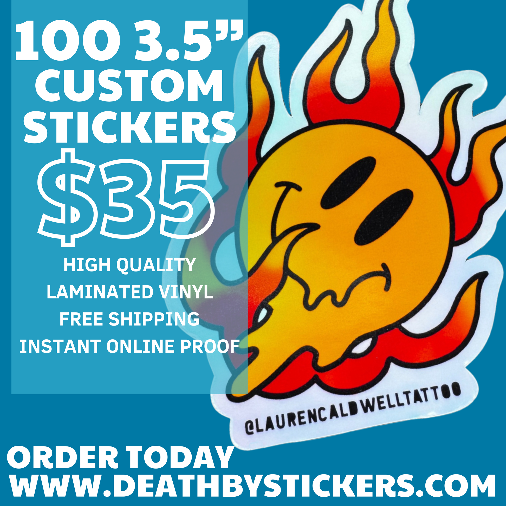 Get our amazing White Vinyl, Laminated, Bulletproof Stickers at a MAJOR Reduced Price.