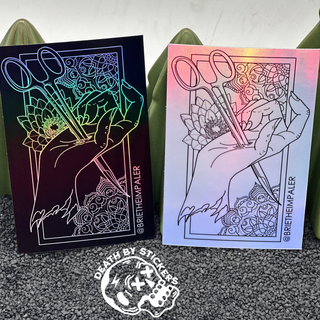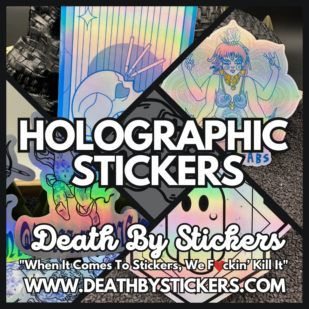 Amazing quality holographic stickers at really reasonable prices with a LOW MINIMUM ORDER QUANTITY! We offer holographic vinyl in gloss or matte finish. Stickers are UV sealed and waterproof, rated for outdoor use for four years.