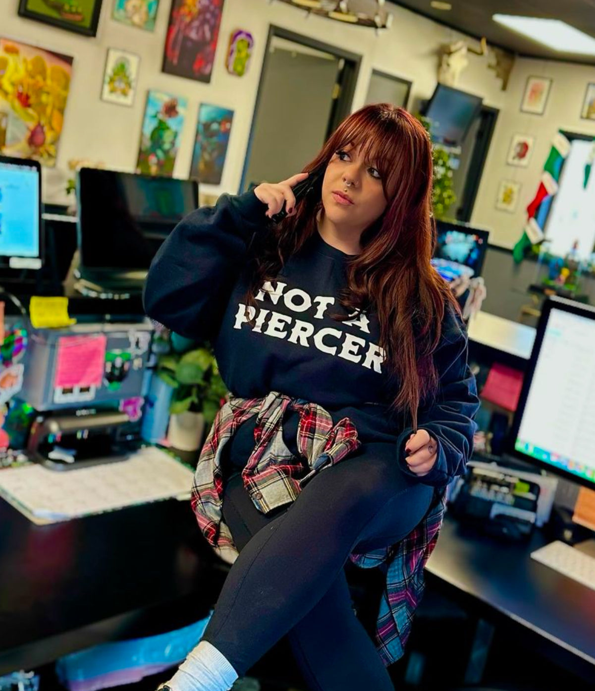 Oh you work in a piercing studio, you must be a piercer, right? Well no. Hopefully this high quality t-shirt, hoodie or crew neck sweatshirt can answer the question before it’s even asked.